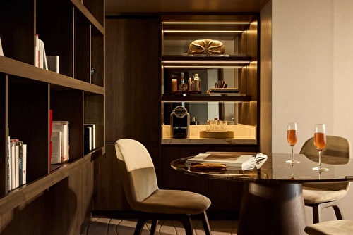 With effortless flow, inside a lounge space, walk-in wardrobe with vanity, and a curated mini-bar replenished daily to your preferences are accompanied by an espresso machine and tea-making facilities.